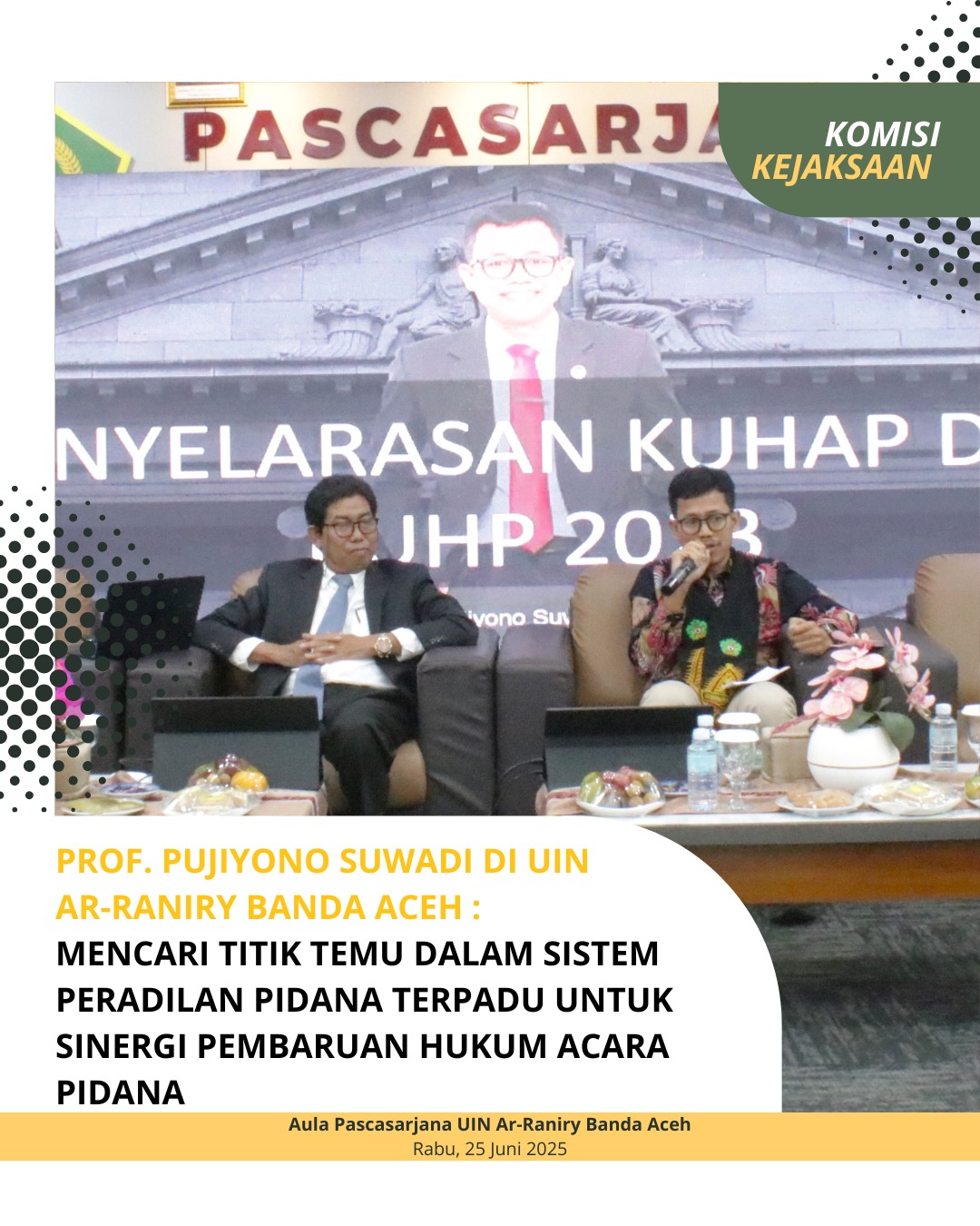 Banda Aceh, 26 Juni 2025 — Pada kunjungan kerjanya ke Kejaksaan Tinggi Aceh hari ini, Guru Besar Hukum Pujiyono Suwadi mengemukakan bahwa praktik yang dikenal sebagai “denda damai” bagi pelaku korupsi—terutama dalam kasus ekonomi seperti perpajakan, perbankan, dan asuransi memiliki landasan hukum yang jelas. Ia menunjuk Pasal 35 Undang-Undang Kejaksaan sebagai dasar pengenaan denda tunai dalam tindak pidana ekonomi.