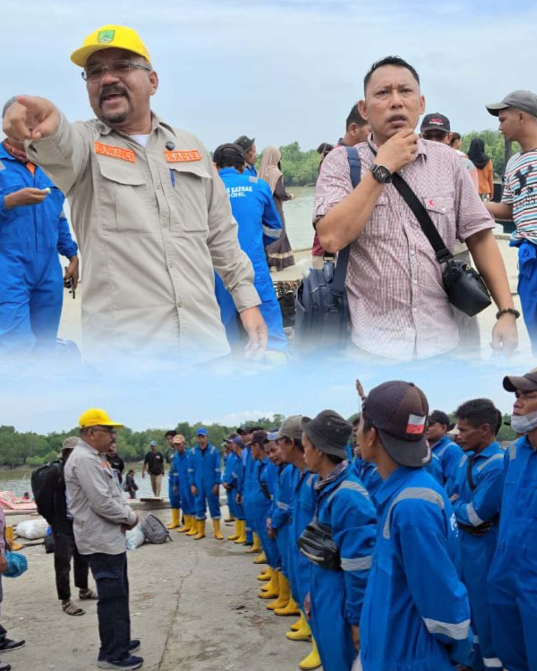 Suwandi S. Sos Kepala Dinas Lingkungan Hidup (DLH) menyampaikan bahwa dinas lingkungan hidup yang dipimpinnya berangkat ke Panipahan, Kecamatan Pasir Limau Kapas bersama Satgas sebanyak 60 orang melalui Armada Laut di Pelabuhan Oliong.