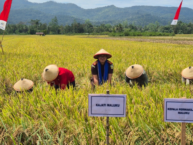 Waimital — Kejaksaan Tinggi Maluku di Ambon Bapak Agoes Soenanto Prasetyo, S.H., M.H yang diwakili Kepala Kejaksaan Negeri Seram Bagian Barat (Kajari SBB), Anto Widi Nugroho, S.H., M.H., hadir dalam kegiatan Panen Raya Padi Sawah di Desa Waimital dengan didampingi oleh Kasubbagbin Kejari SBB Kamis 4 September 2025.