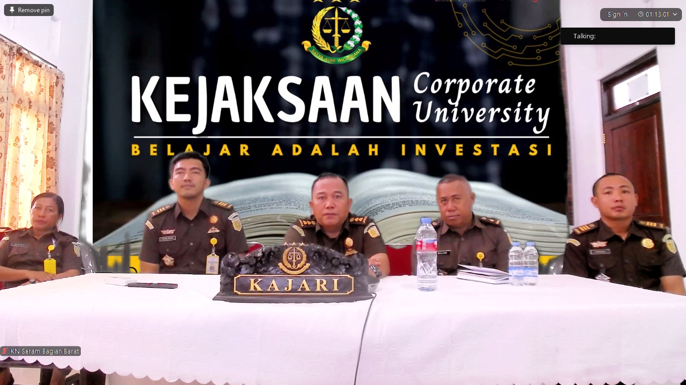 Seram Bagian Barat- Rabu, 19 Februari 2025, Plt Kajari SBB Bambang Heripurwanto, S.H., M.H beserta jajaran mengikuti bimbingan teknis (Bimtek) dengan tema peran kejaksaan dalam Investasi secara daring diruang vidcon kejari sbb yang dilaksanakan oleh kejaksaan RI Corporate University Badan Diklat Kejaksaan RI.