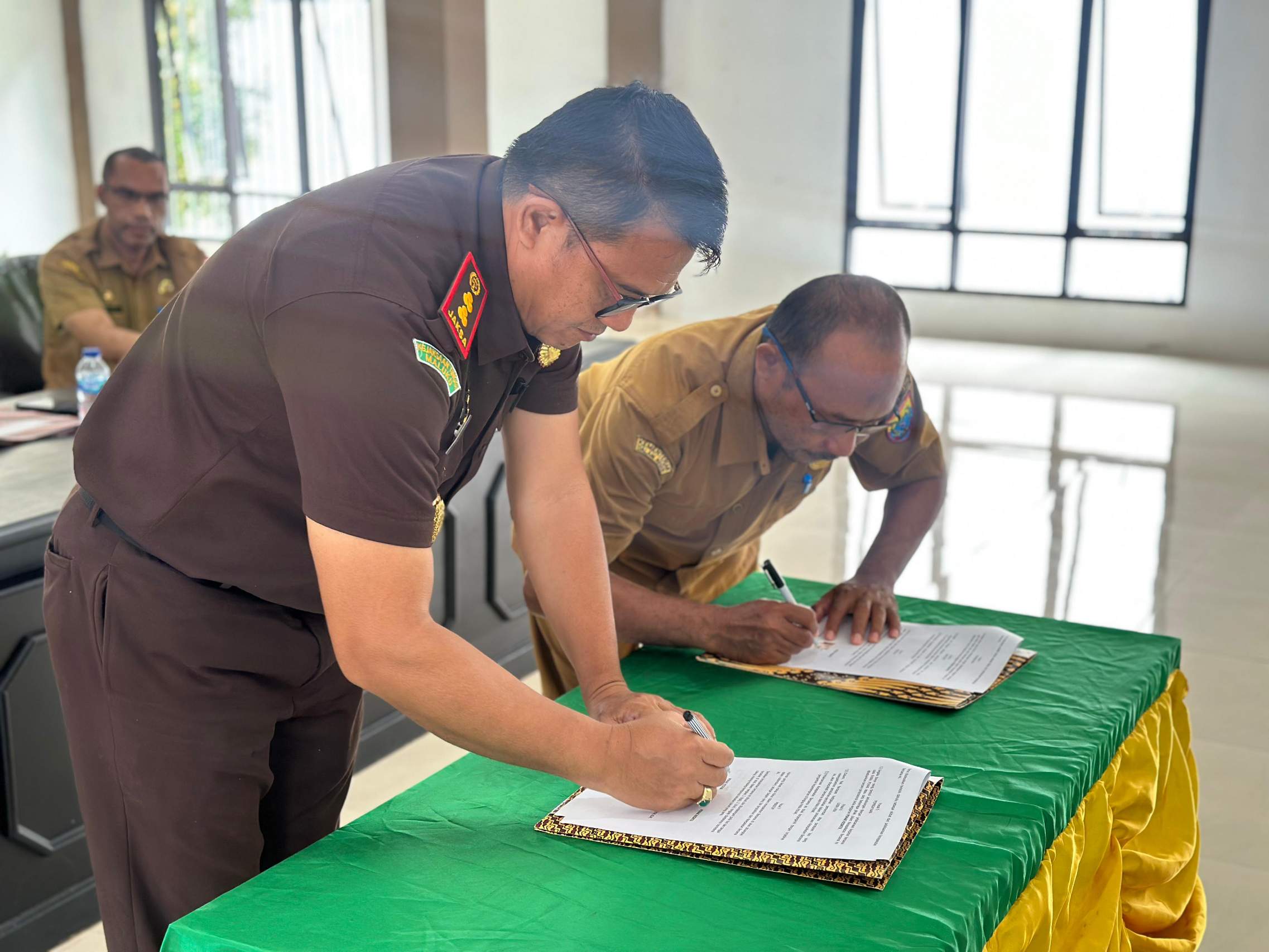 Acara ini digelar hari ini di Aula Kejaksaan Negeri Seram Bagian Barat dan dihadiri oleh Saiful Suneth, S.H., Kadinsos Kab. SBB, Kadis Dukcapil Kab. SBB, Jaksa Pengacara Negara Kejari SBB dan Ketua yayasan di Seram Bagian Barat diataranya: