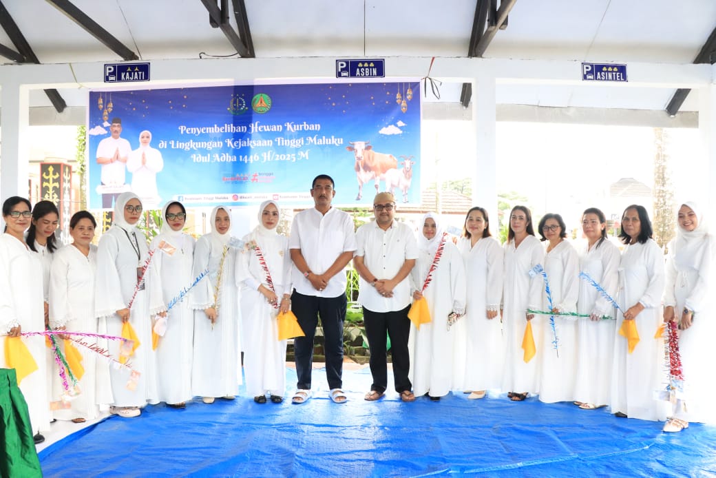 Dalam pelaksanaan kegiatan kurban, Kajati Agoes SP didampingi Ketua IAD Wilayah Maluku Ny. Debie Agoes, Wakajati Jefferdian, Wakil Ketua IAD Wilayah Maluku Ny. Vinna Jefferdian, Kabag Tata Usaha Ariyanto Novindra, S.H.,M.H, Para Koordinator, Para Pegawai Jaksa dan Tata Usaha serta Pengurus IAD Wilayah Maluku.