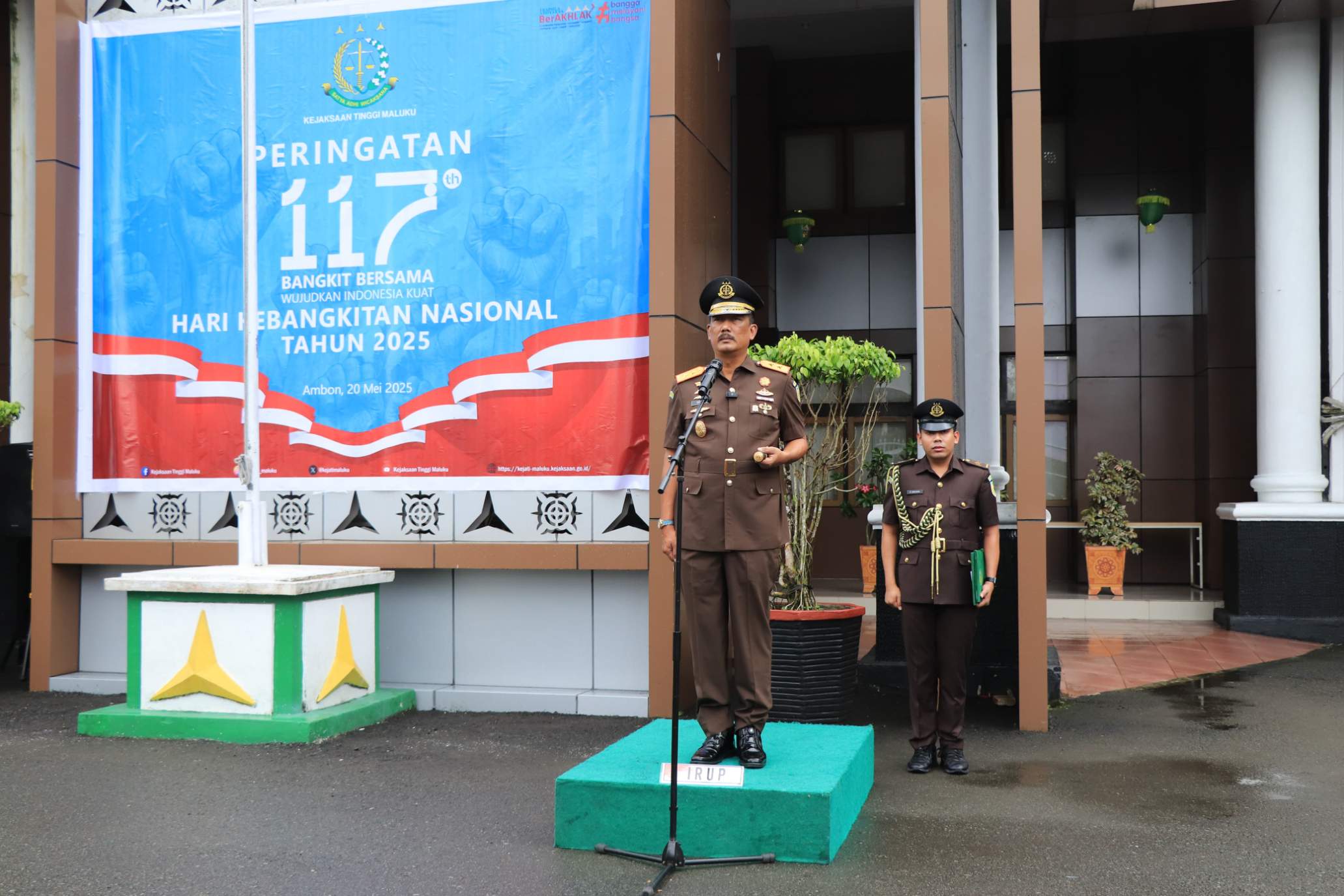 KEJAKSAAN TINGGI MALUKU – Ambon, Kepala Kejaksaan Tinggi Maluku Agoes Soenanto Prasetyo, S.H.,M.H selaku Inspektur Upacara, memimpn jajarannya dalam Upacara Peringatan Hari Kebangkitan Nasional ke – 117 tahun 2025, di halaman Kantor Kejaksaan Tinggi Maluku, pada hari ini Selasa (20/05/2025).