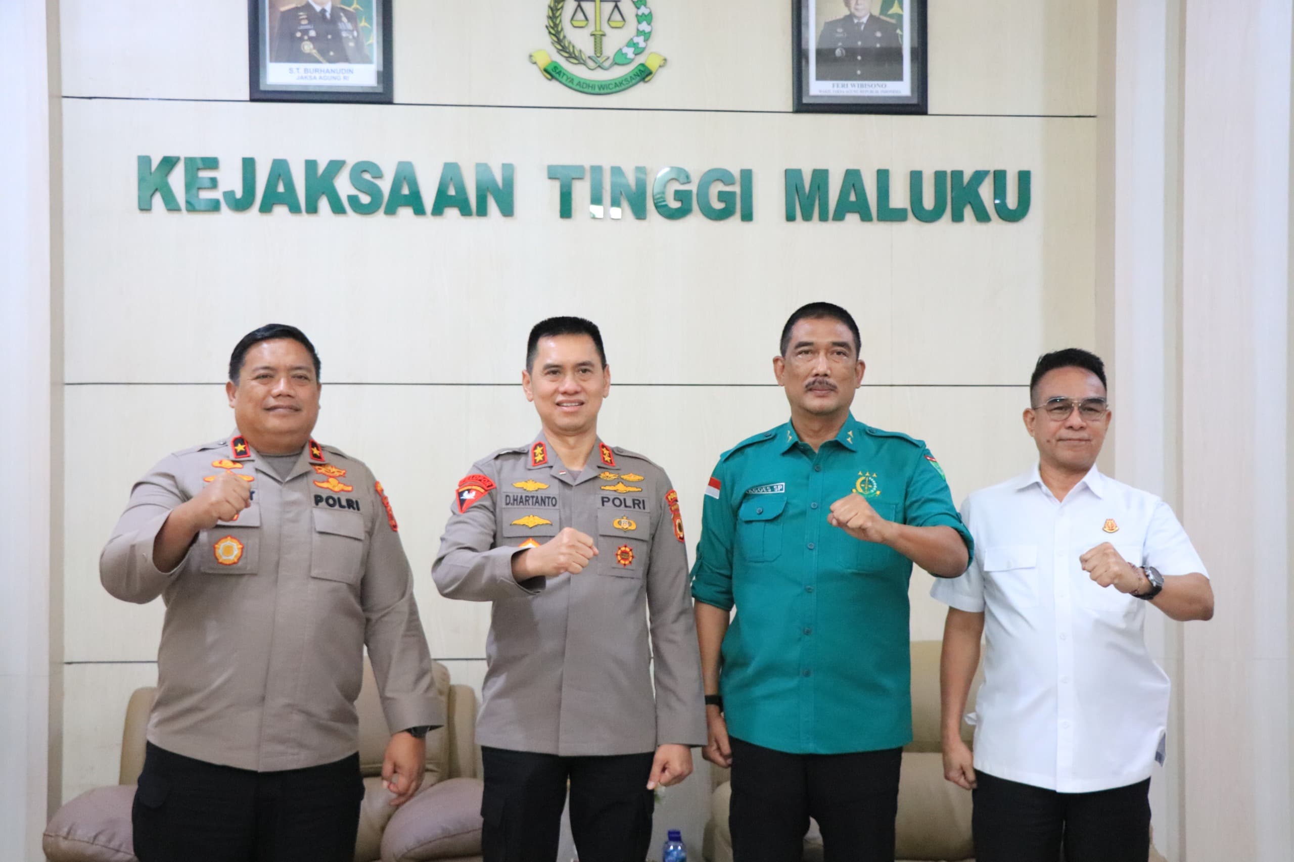 MALUKU – Ambon, Kepala Kejaksaan Tinggi Maluku Agoes Soenanto Prasetyo, S.H.,M.H beserta jajaran Pejabat Utama Kejaksaan Tinggi Maluku, sambut hangat Kapolda Maluku Irjen Pol Prof. Dr. Dadang Hartanto, S.H.,S.I.K.,M.Si beserta rombongan, diruang rapat Kejaksaan Tinggi Maluku, pada hari ini Kamis (28/08/2025).