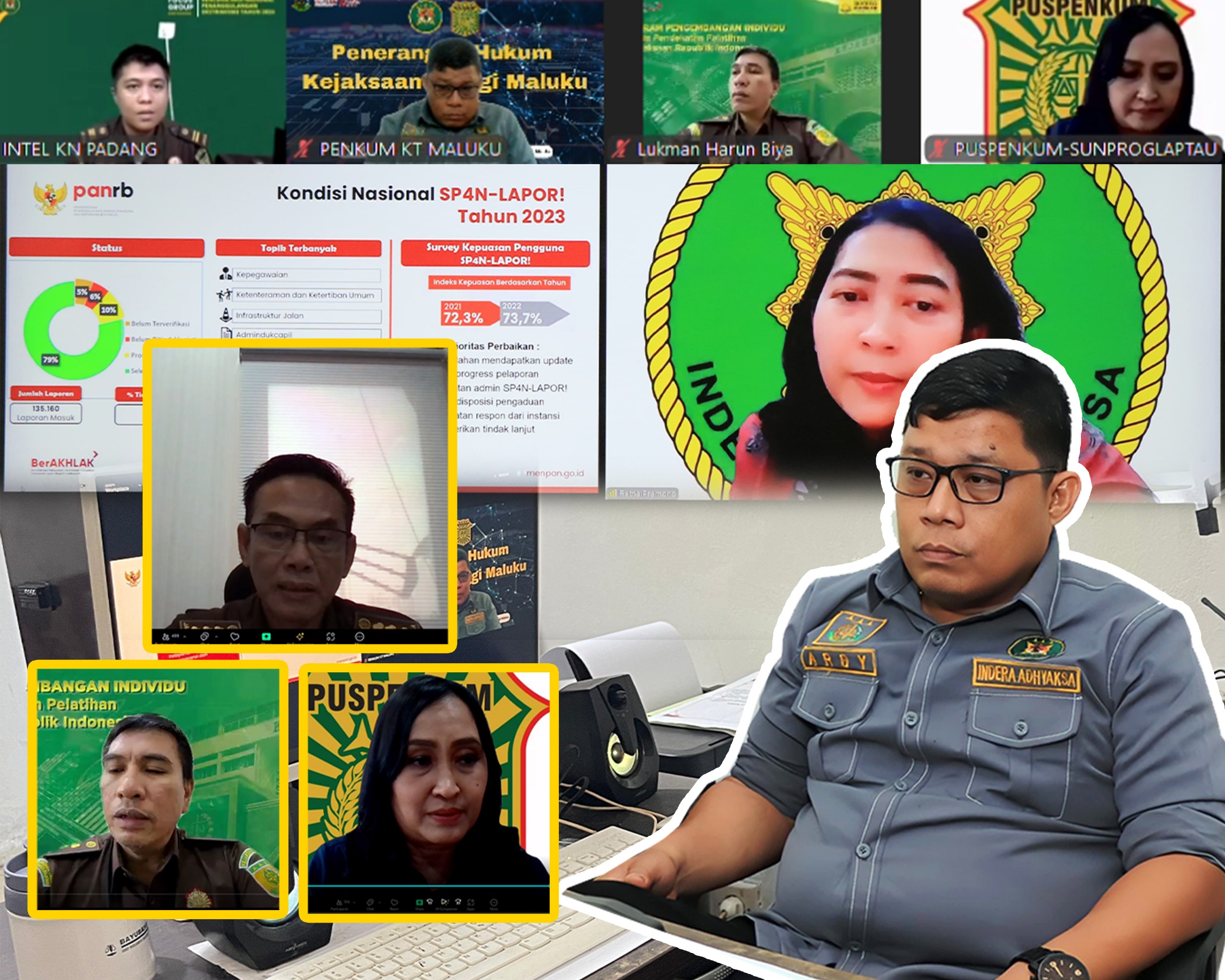Ambon- Kepala Seksi Penerangan Hukum Kejaksaan Tinggi Maluku Ardy, SH., MH., mengikuti kegiatan Penilaian Indeksasi SP4N-LAPOR yang diselenggarakan oleh Pusat Penerangan Hukum Kejaksaan RI secara virtual melalui Zoom Meeting.