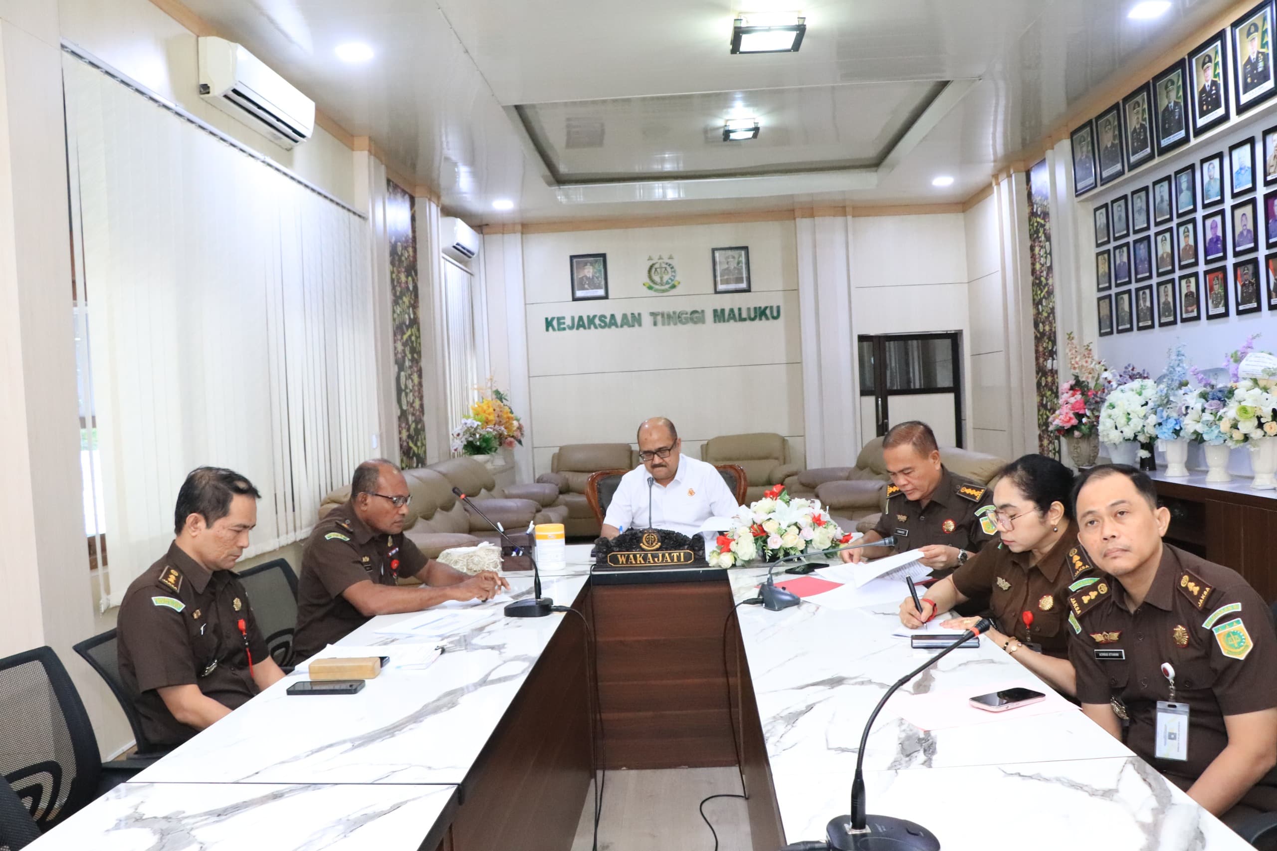 KEJAKSAAN TINGGI MALUKU – Ambon, Wakil Kepala Kejaksaan Tinggi Maluku Dr. Jefferdian didampingi Asisten Tindak Pidana Umum Yunardi, S.H.,M.H beserta jajarannya secara virtual diruang Vicon Pidum, menerima usulan penghentian penuntutan berdasarkan Keadilan Restoratif dalam perkara 351 dari Kejaksaan Negeri Maluku Tengah atas nama Tersangka “AI” alias Toni, pada hari ini Rabu (05/03/2025).