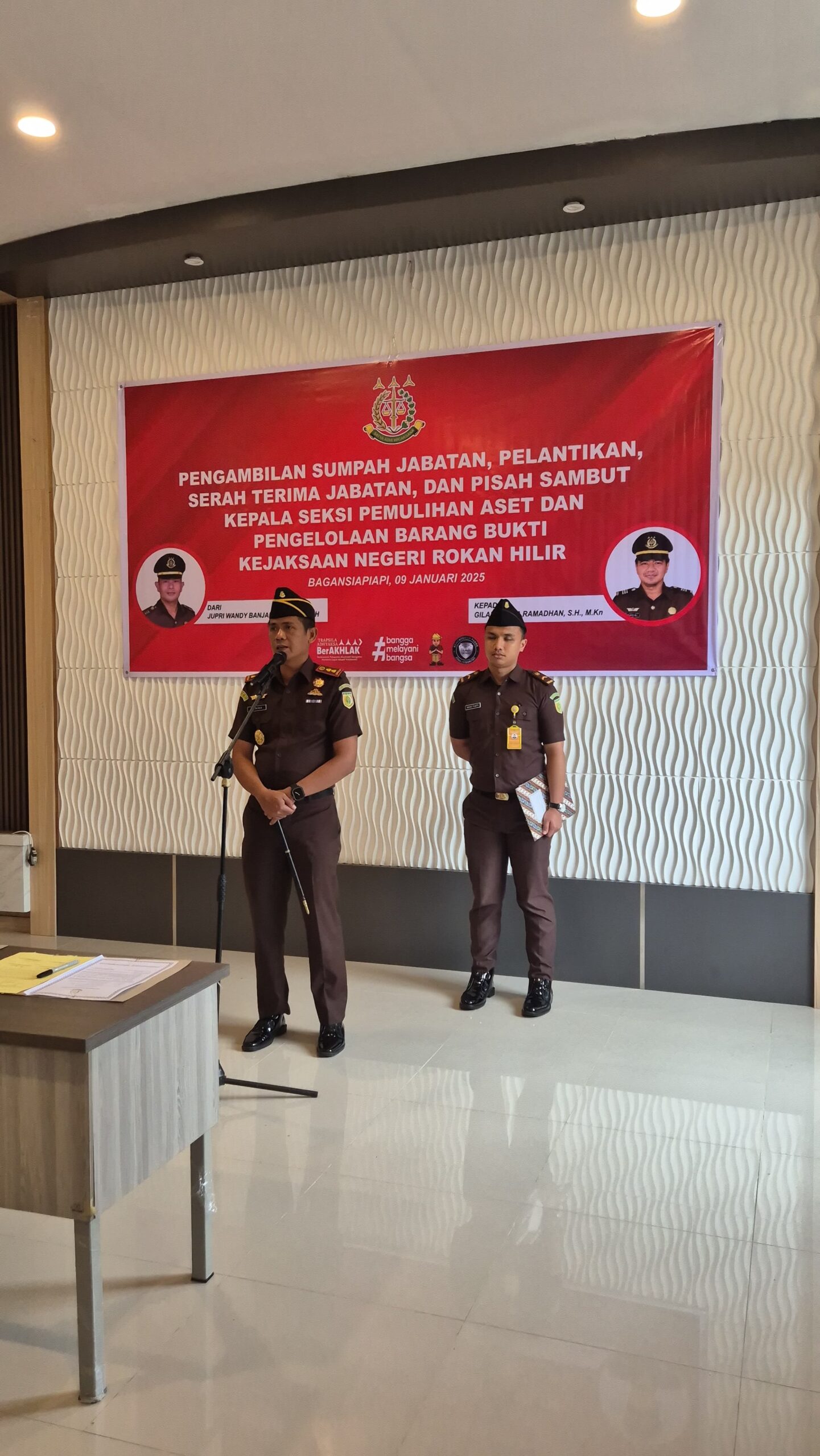 Pengambilan Sumpah Jabatan, Pelantikan, Serah Terima Jabatan, dan Pisah Sambut Kepala Seksi Pemulihan Aset dan Pengelolaan Barang Bukti pada Kejaksaan Negeri Rokan Hilir