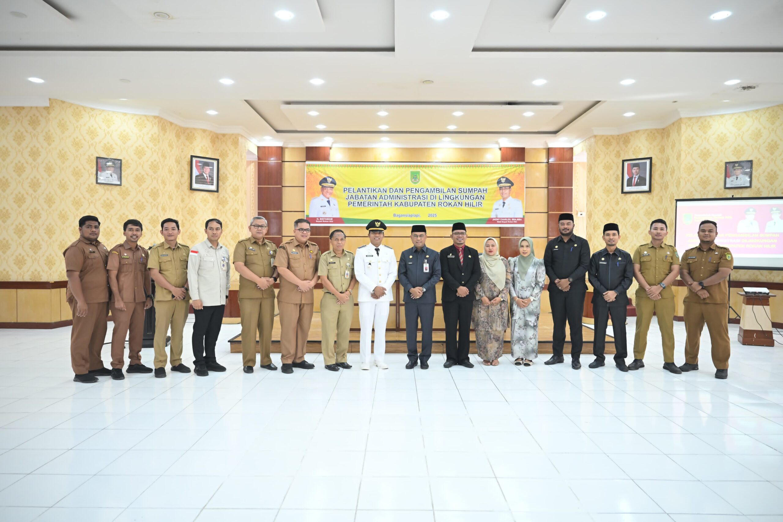 Rohil- Sekretaris Daerah Kabupaten Rokan Hilir, Drs. H. Fauzi Efrizal, M.Si, secara resmi melantik dan mengambil sumpah jabatan dua orang pejabat administrator di lingkungan Pemerintah Kabupaten Rokan Hilir. Prosesi pelantikan tersebut berlangsung di Aula Rapat Lantai IV Kantor Badan Pengelola Keuangan dan Aset Daerah (BPKAD), Selasa (29/4/2025) Jalan Merdeka, Bagansiapiapi, Provinsi Riau.